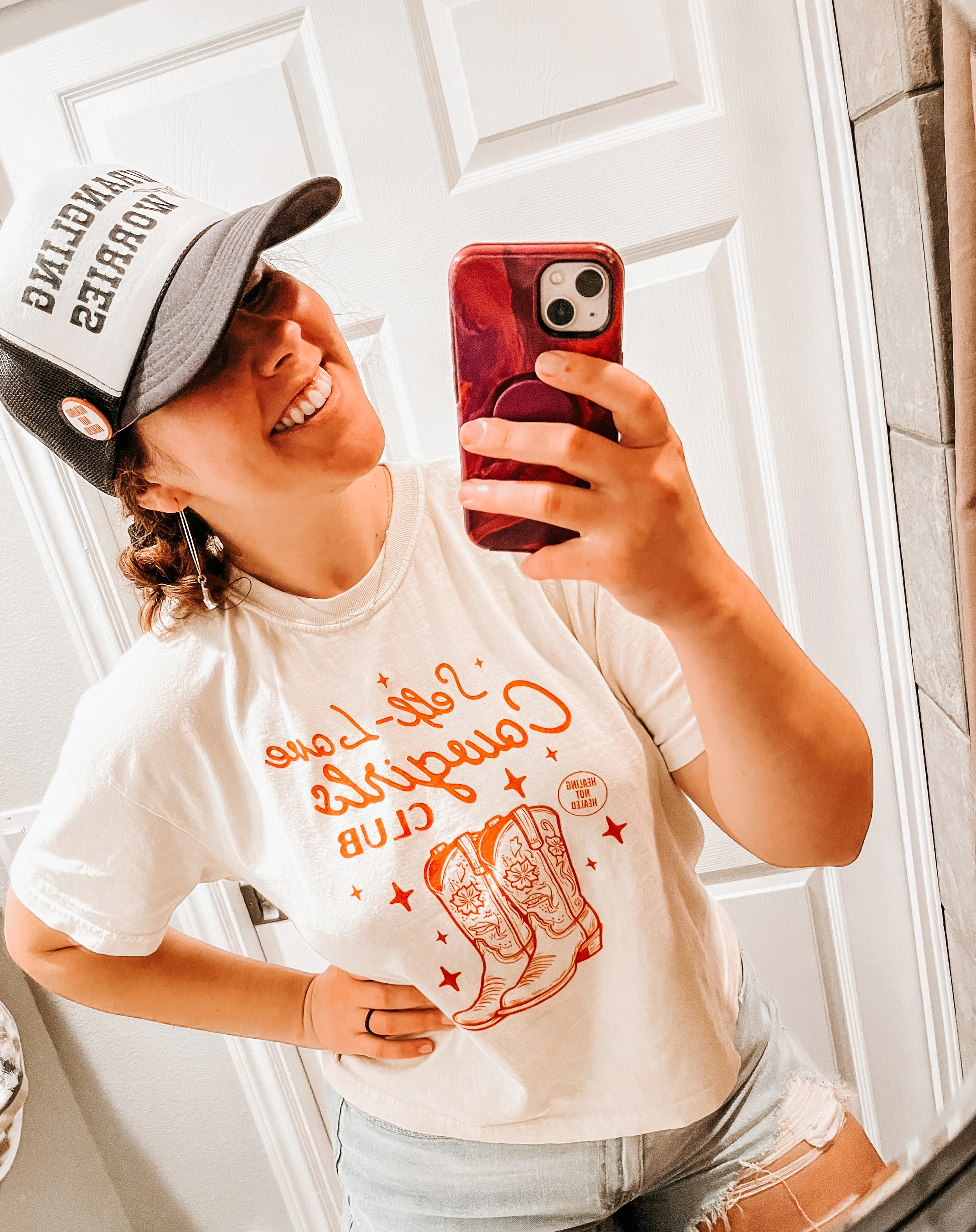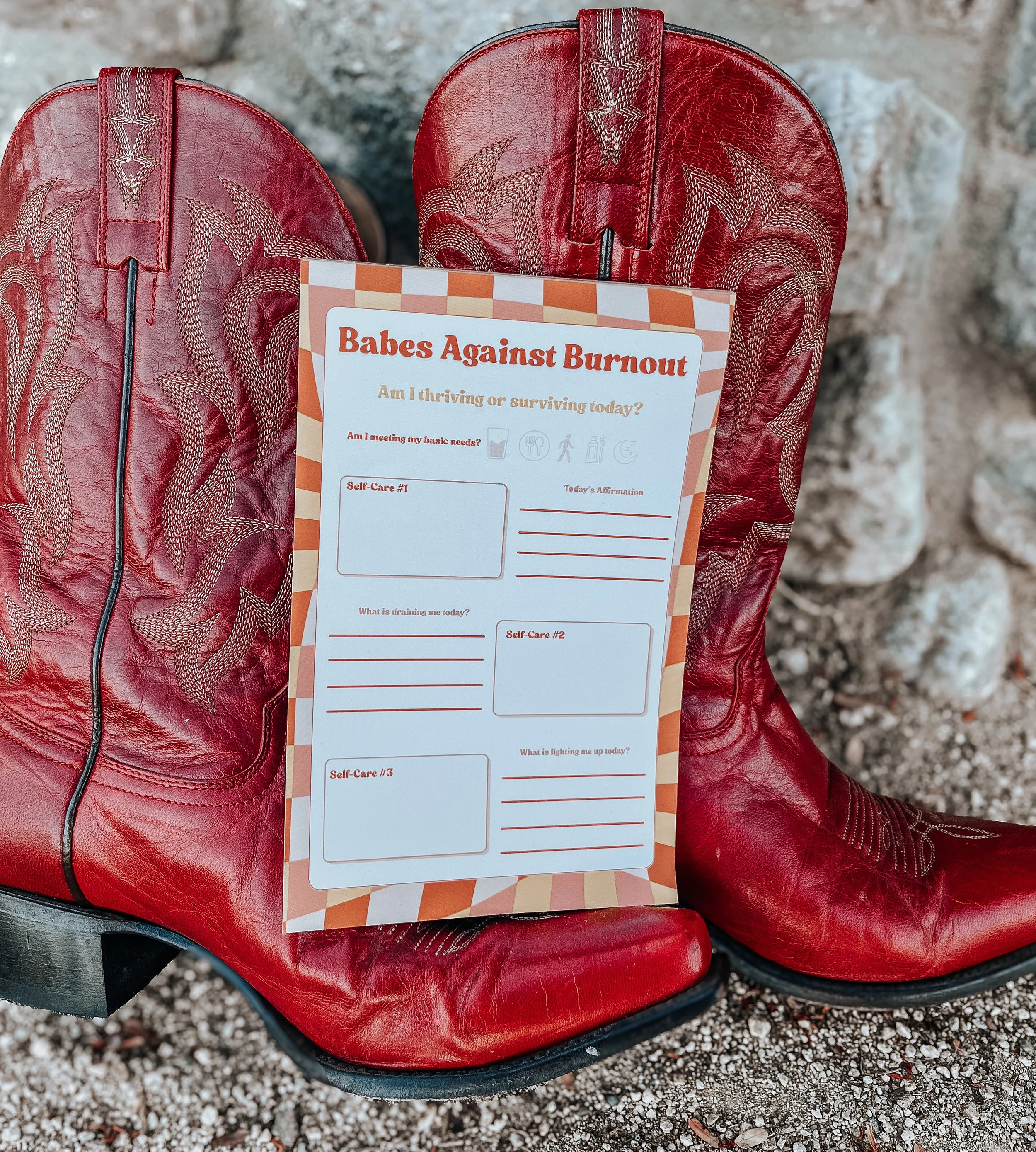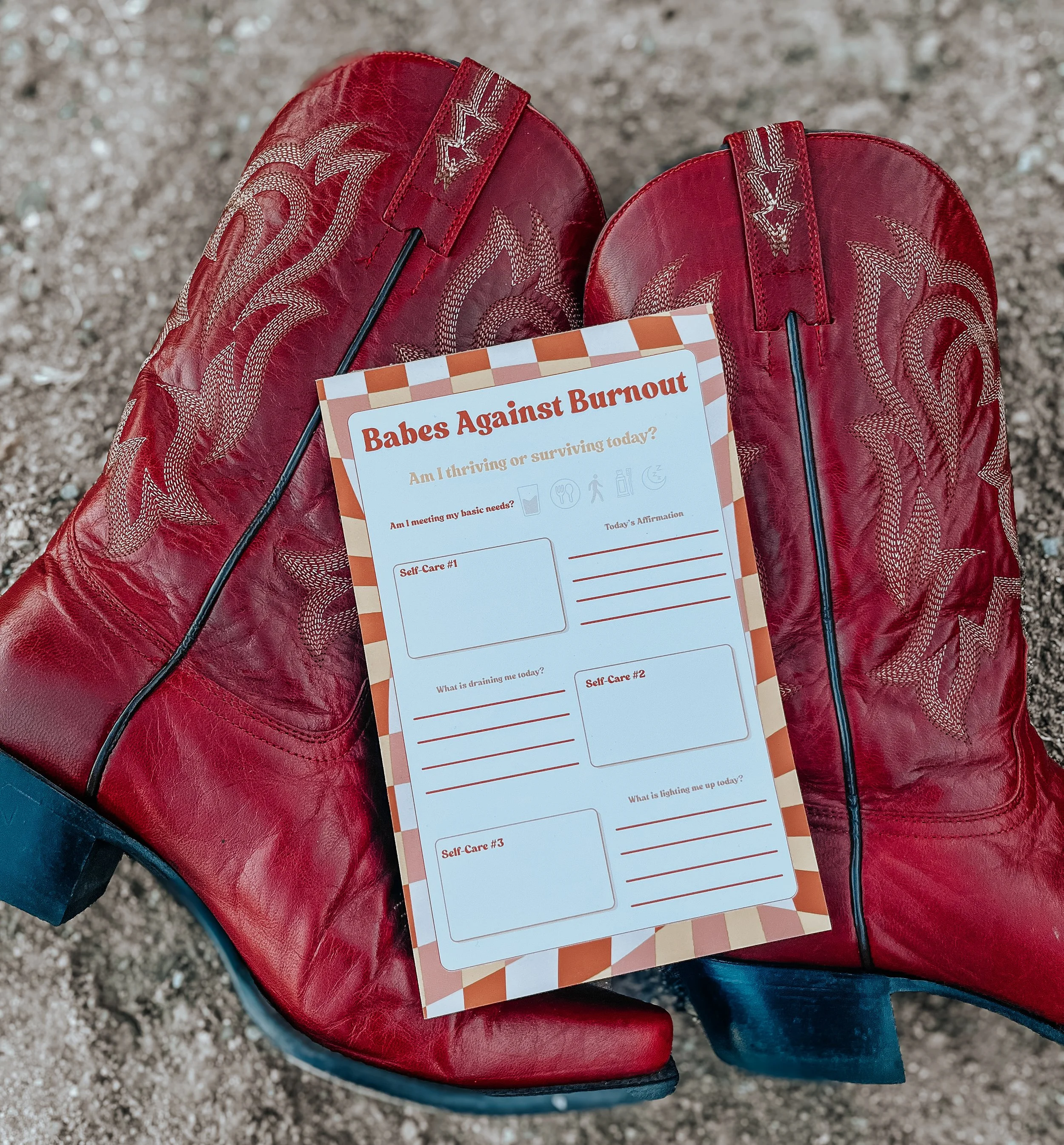 Even Cowgirls Get Anxious Boxy T-Shirt $36.00 Self-Love Cowgirls Club Boxy T-Shirt $36.00 Large She is Magic That One $12.00 Large "It's Okay, I'm Okay" Banner $12.00 Large Happy Banner $12.00 Small Howdy Y'all Banner $8.00 Large Hey Y'all Banner $12.00 Small Hey Y'all Banner $8.00 Large Hey Y'all Banner $12.00 Multi-Colored Bible Tabs $10.00 Blush Bible Tabs $10.00 Community & Collaboration Over Competition Trucker Hat – Empowerment & Unity Cap $16.50 Wrangling Worries Trucker Hat $16.50 Babes Against Burnout Notepad | Daily Self-Care Planner for Women | Mental Health Tracker | Burnout Prevention Journal | Self-Reflection Pad from $15.00 You are Resilient Tote Bag $5.00 Retired Boots: A Collection of Poems from a Route 91 Survivor from $15.00